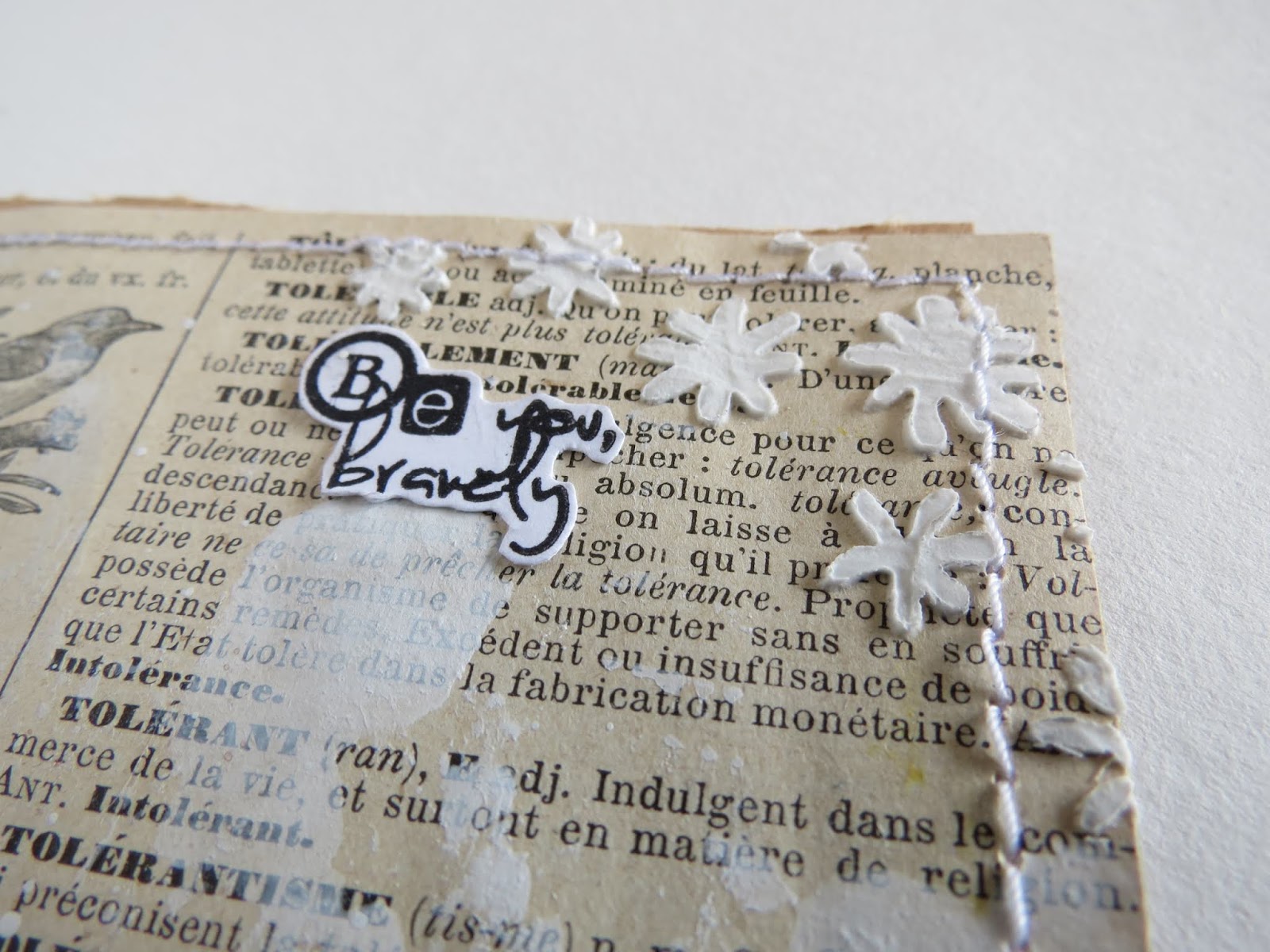 J'ai d'abord tamponné 2 des grands tampons AALL & Create (le #54 et le #80) sur 2 tags préalablement recouvert de gesso. Puis une fois sec, j'ai entrepris de les colorer avec les bistres :